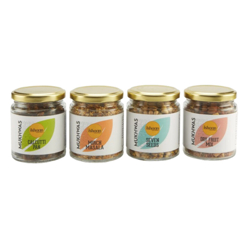 Mirch Masala, Calcutti Paan, 7 Seeds, Dry Fruit Mix (100gm X 4) - Glass